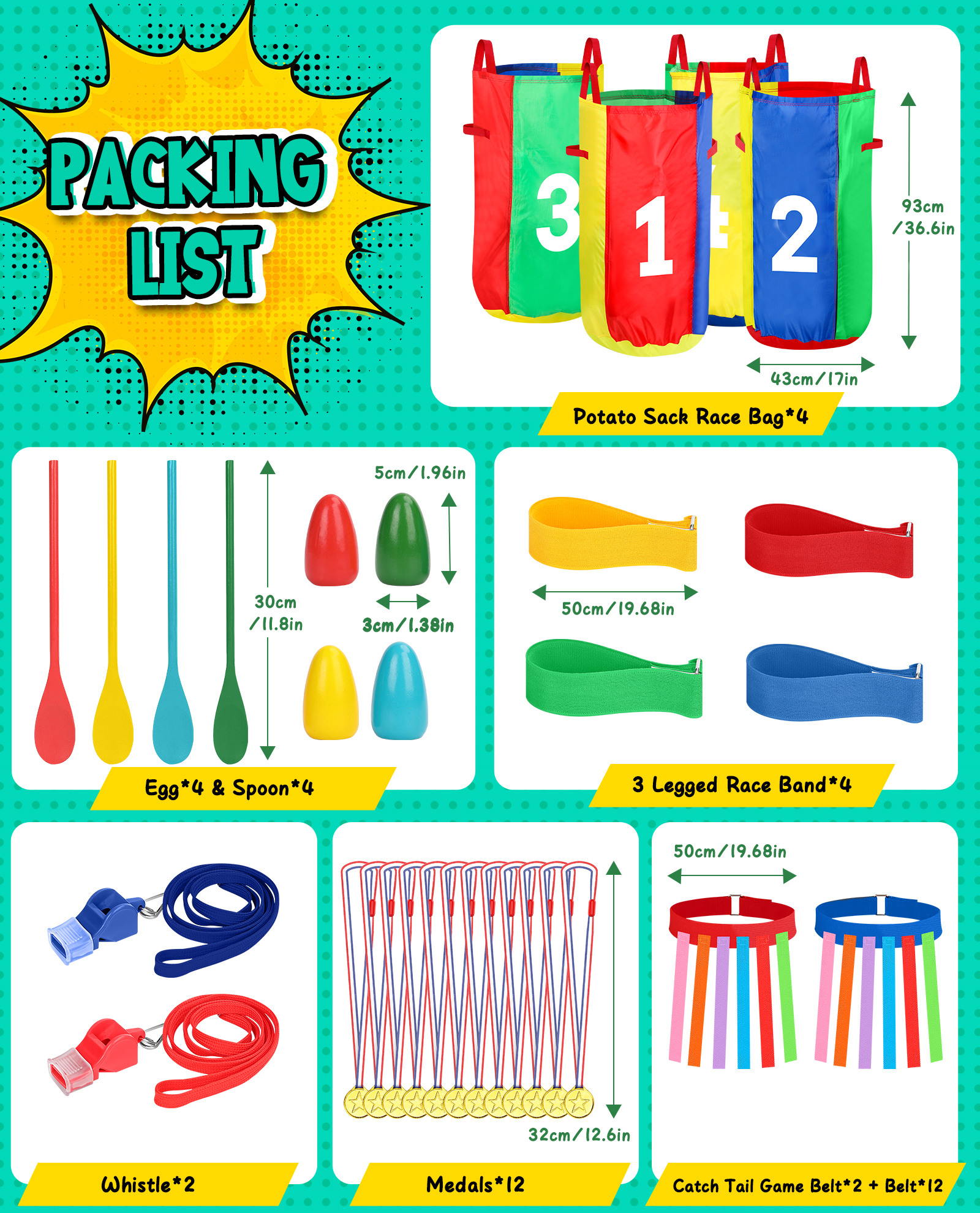Great Outdoor Games for Kids and Adults: This is a great game allows to everyone get involved in games, especially for outside games for carnival themed birthday party, outdoor picnics, family days, obstacle course, minute to win it competition, 4th of July gathering and church field day events, 2 Whistles, 12 Medals used to reward the racers who win the games